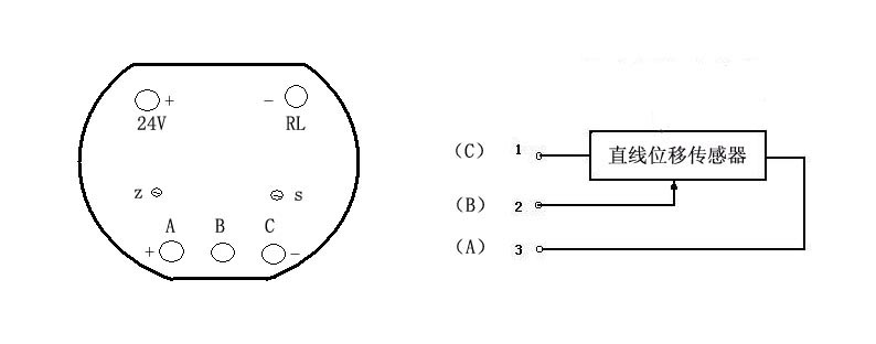 1.配套电子尺阻值:≥2KΩ 2.输出信号:4~20mA 3.负载:电源电压小于12V时为0~250欧, 电源电压为24V时为0~750欧. 4.电源电压 :DC:24V(9~36V可用) 5.线性:优于:0.05%F.S 6.外形尺寸:φ 45× 20 mm 7.接线:参考下面示意图